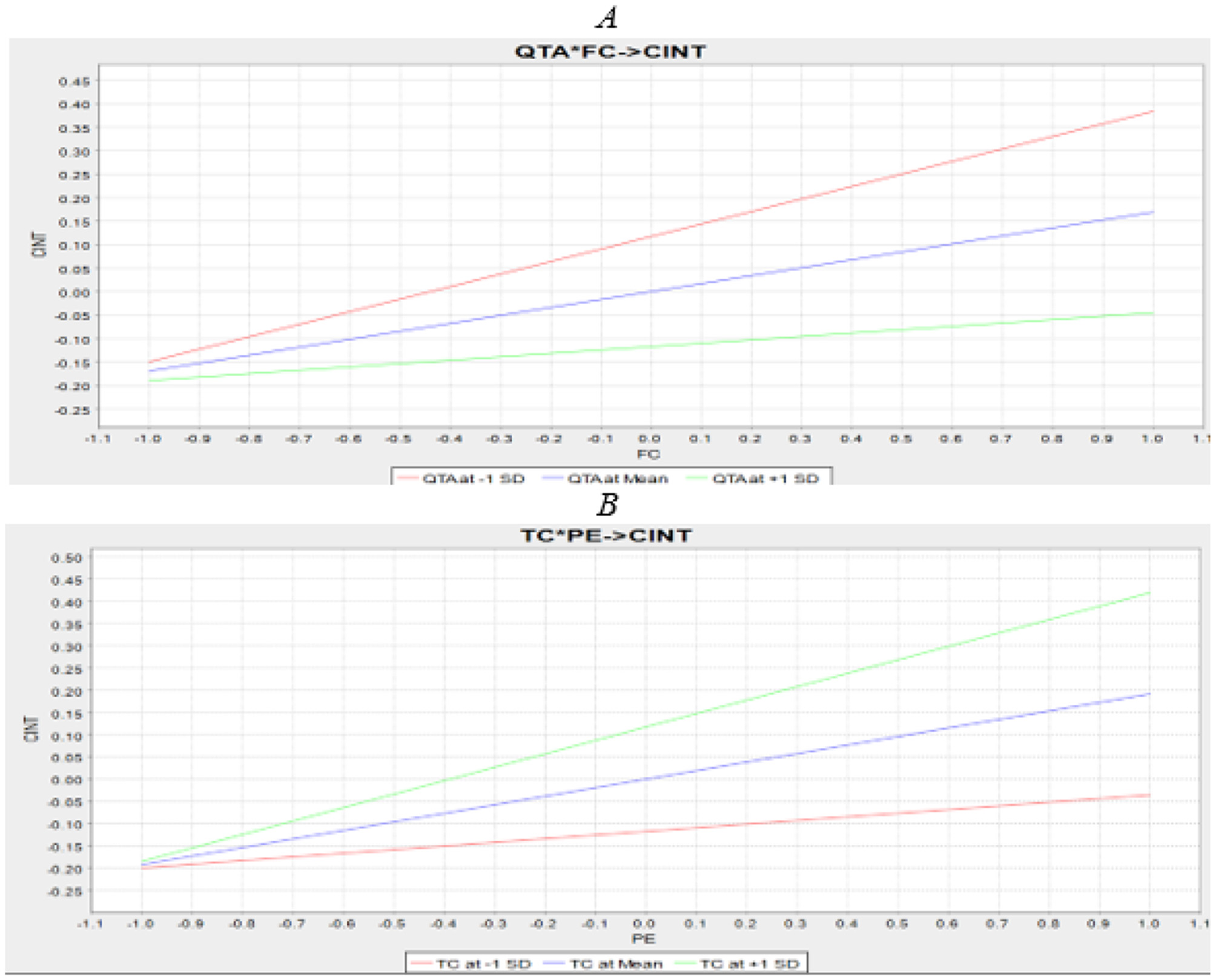 The research findings reveal that effort expectancy is the most influential factor, and that both moderator factors, QTA and TC, are significant. However, social influence and hedonic motivation were found to be insignificant. Furthermore, our extended research model explains 76.5% of the variance in CINT without the moderation effect.