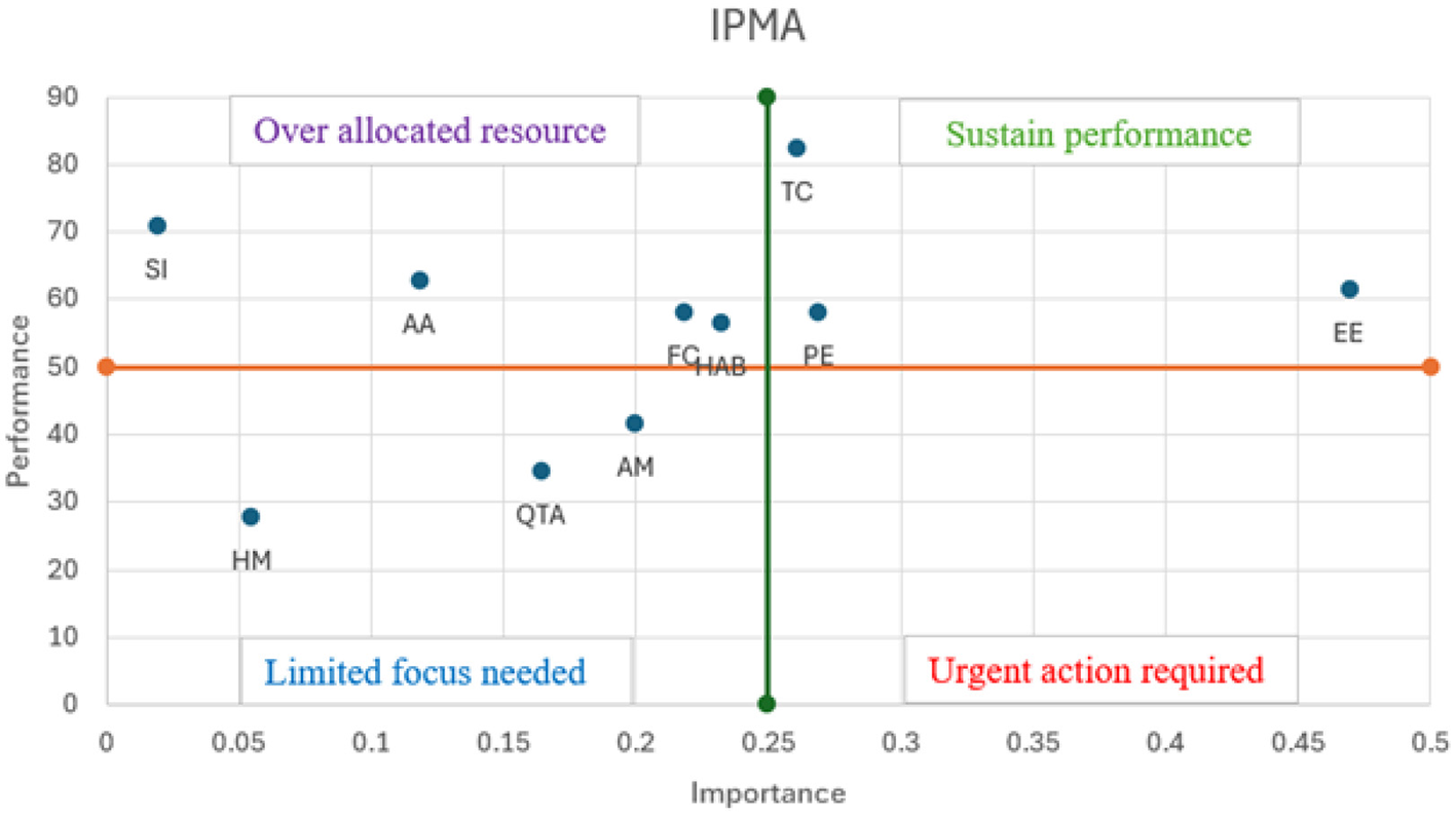The aforementioned gaps contribute to answering the following research questions: (a) Among the main antecedents, which is the most influential that affects the QR-code mobile payment continuance intention? (b) Is the modified UTAUT2 model sufficient in explaining both enhancing and deterrent factors? (c) Does QR transaction anxiety moderate the relationship between facilitating condition and QR-code mobile payment continuance intention? (d) Does transaction convenience moderate the relationship between performance expectancy and QR-code mobile payment continuance intention? (e) What practical recommendations can be derived from the analysis of IPMA to effectively enhance user retention in QR-code mobile payment systems? To answer these research questions (a, b, c, d), we employ SEM analysis using PLS 3.0. In addition, IPMA is used to answer our research question (e).