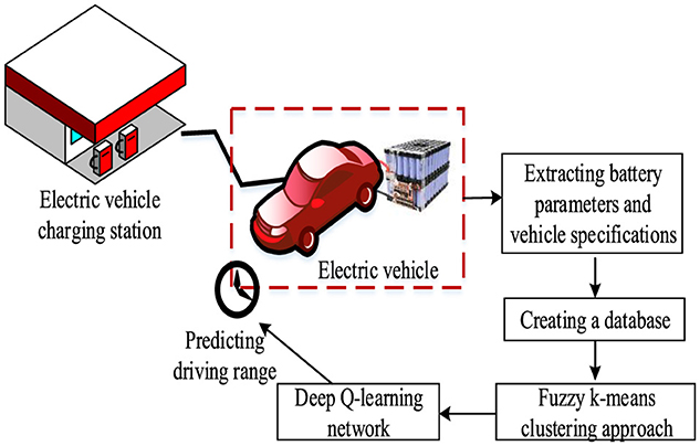 Keywords: driving range, state of charge, electric vehicle parameters, deep reinforcement learning, pathfinder optimization, fuzzy k-means algorithm