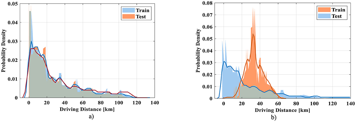 Figure 6. Training and testing data validation with the (a) same distribution, (b) different distribution.