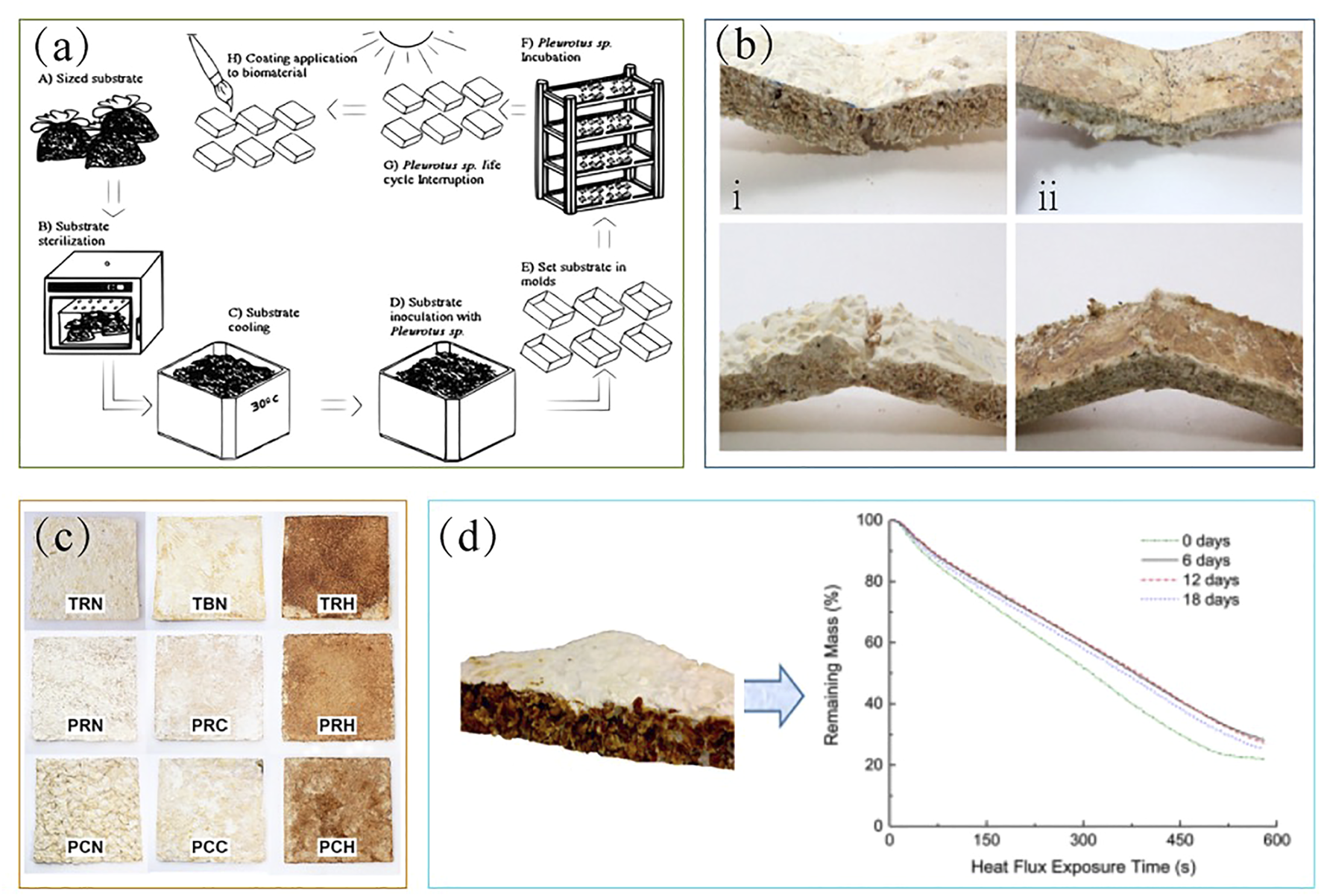 Jones M. Bhat T. Kandare E. Thomas A. Joseph P. Dekiwadia C. et al (2018). Thermal degradation and fire properties of fungal mycelium and mycelium - biomass composite materials. Sci. Rep.8 (1), 17583. 10.1038/s41598-018-36032-9
