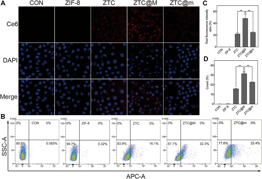 Additionally, to analyze the uptake of ZTC@M in different groups, the FACSVerse flow cytometry (BD, United States) was used to analyze the Ce6 fluorescence intensity (FL) of AGS cells.