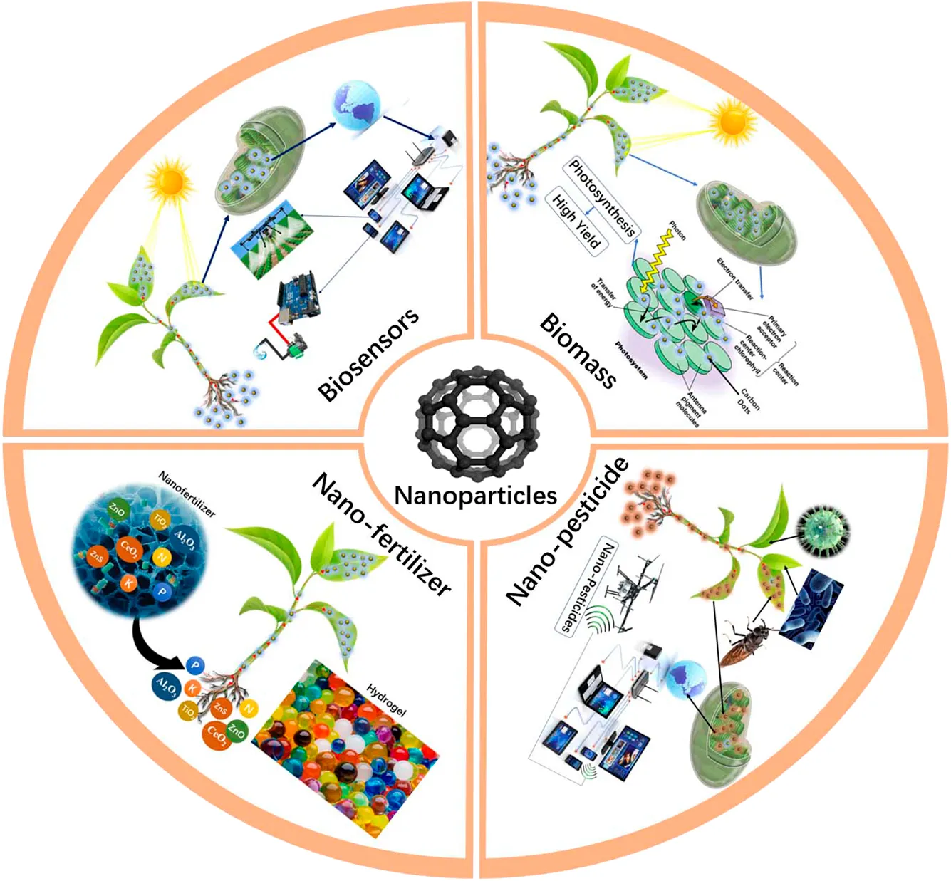 nanosensors, nanofertilizer, nanopesticides, nanobionics, biosafety, biomass accumulation