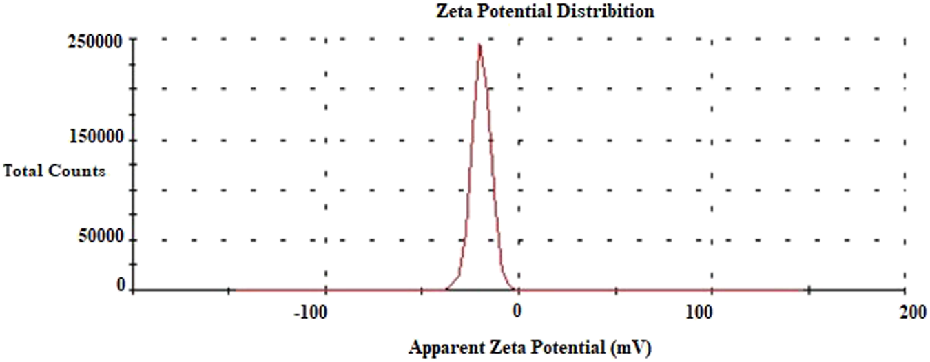 | Zeta-sizer (Malvern Ins.Ltd.) | Zeta Deviation (mV): 5.81; Viscosity (cP): 0.8872; Conductivity (mS/cm): 0.00843; Dispersant Dielectric Constant: 78.5; Temperature (°C): 25; Count Rate (kcps): 93.3 |