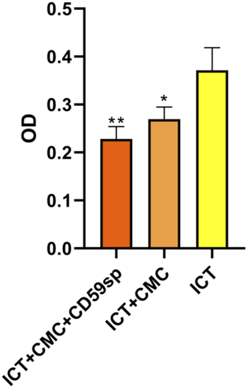 | ICT + CMC + CD59sp | 0.228 ± 0.026** | <0.01 |