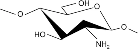 CS is derived from chitin and is a linear, semi-crystalline polysaccharide composed of (1→4)-2-acetamido -2-deoxy-b-D-glucan (N-acetyl D-glucosamine) and (1→4)-2-amino-2-deoxy-β-D-glucan (D-glucosamine) units (Deepthi et al., 2016; Islam et al., 2016). CS can be prepared by deacetylation of NaOH and borohydride, or it can be deacetylated by sophisticated grinding of chitin powder. After deacetylation into CS, the viscosity of CS was increased. In addition, the reaction conditions are mild, and the methods are environment-friendly and low cost (Muzzarelli et al., 2014). Through deacetylation, the acetamide group in chitin is converted to the primary amine group to produce CS. The structure of CS is similar to that of cellulose. However, different from cellulose, the hydroxyl group of cellulose C-2 is replaced by the acetamide group in the structure of CS. Due to the effect of the -NH2 group at the C2 position, the polymer can be dissolved in acidic solutions; however, the solubility in water is poor. This hydrophobicity is determined by the main polysaccharide chain and the N-acetyl group at the C2 position (Tao et al., 2020a).