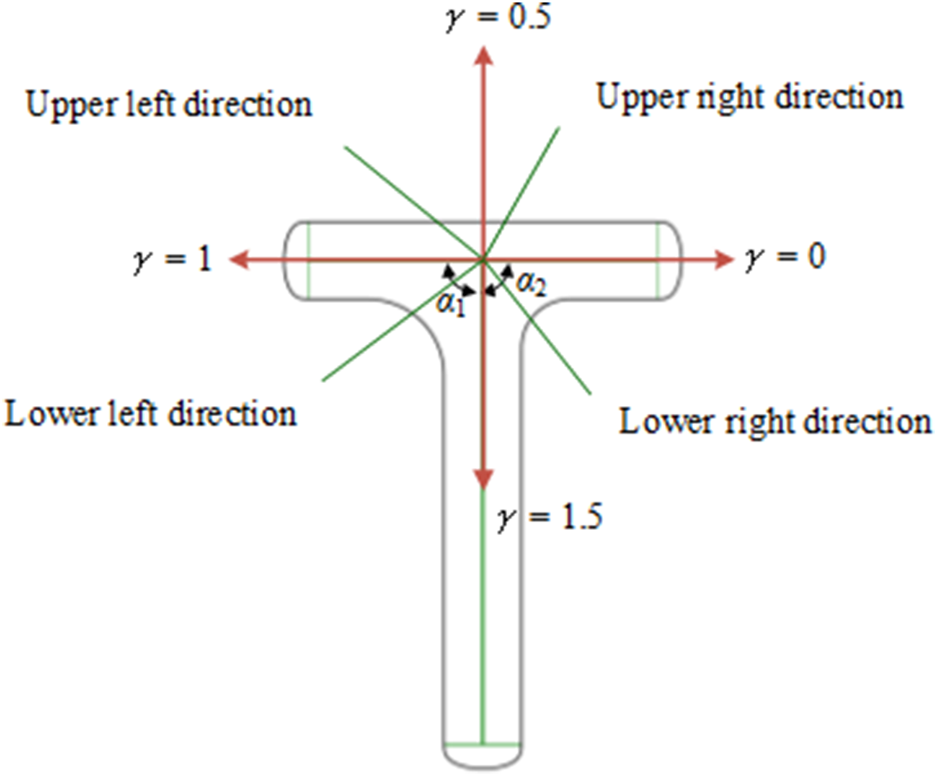 j) P3 = {α1, α2}, where α1 represents the angle between the main vein and the left lateral vein of the head of the T-shaped plate, and α2 represents the angle between the main vein and the right lateral vein of the head of T-shaped plate.