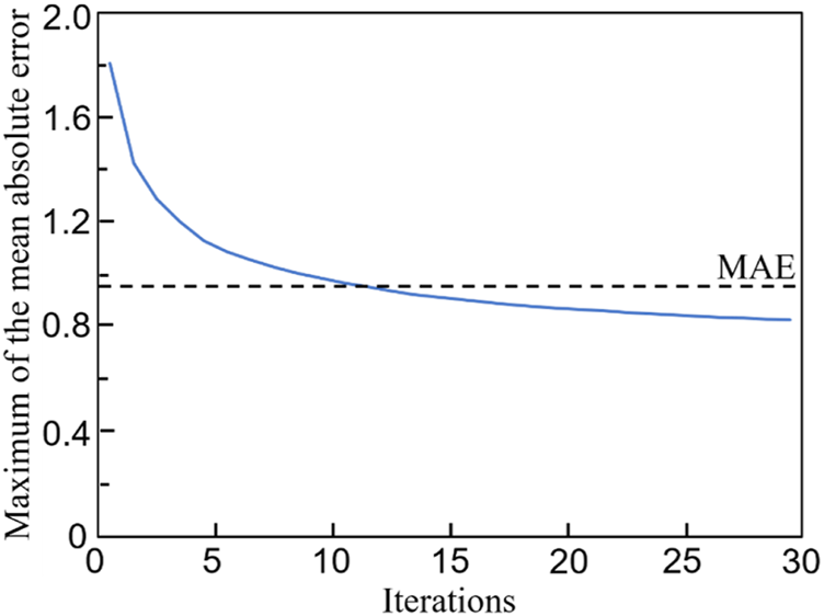 FIGURE 11. The evolution of the maximum mean absolute error (MAE) in 100 optimal samples with the number of iterations.