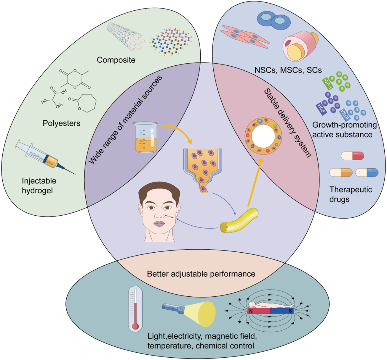soft tissue injuries, nerve transplantation, Biomaterials, tissue engineering, Regenerative medicine, nerve conduit, stem cell, 3D printing