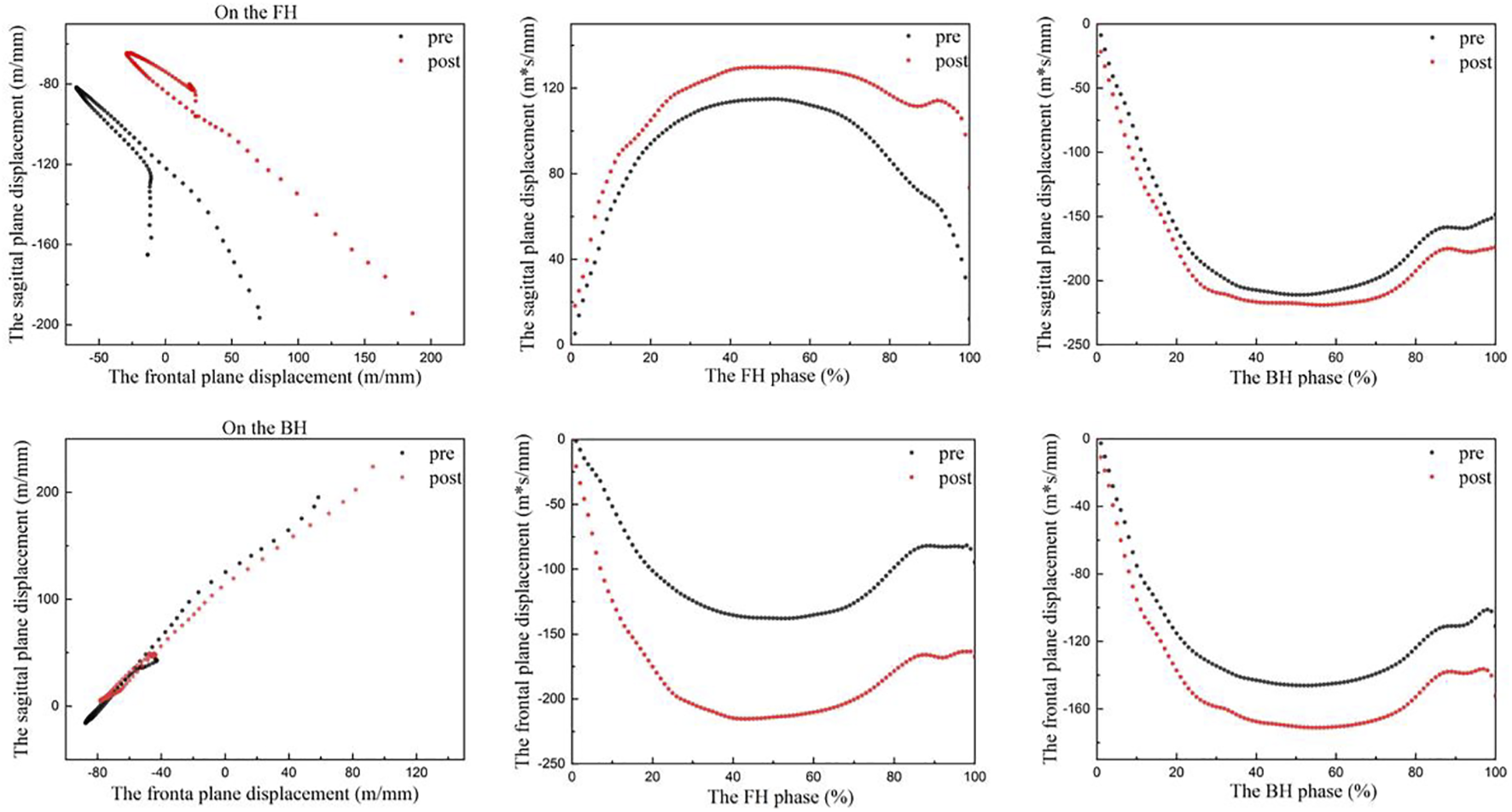 | The Front plane displacement (m*s/mm) | 16.21 ± 2.55 | 18.54 ± 2.70 | 4.394 | 2.33 ± 3.69 | 12.02 ± 2.36 | 14.40 ± 2.34 | 6.001 | 2.39 ± 3.33 |