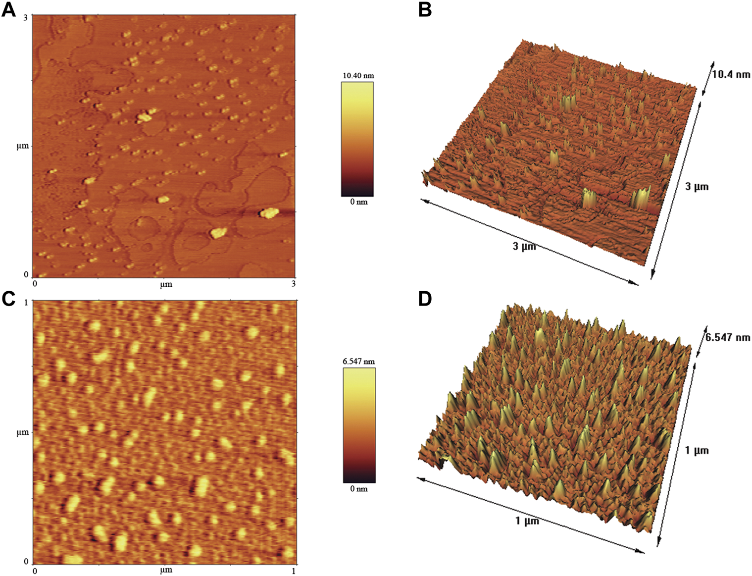 The surface morphology of crude and calcined CuONPs was investigated by AFM (Barani et al., 2021). To do so, NSC15-type silicon probes with the radius of tip curvature less than 10 nm were used and samples were analyzed by AFM device (Brisk model, Ara Research, Iran). The height of each sample was finally estimated in scanning areas of 1 × 1 μm.