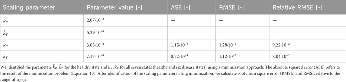 Table 1. Parameters for healthy and disease states for PTH concentration.