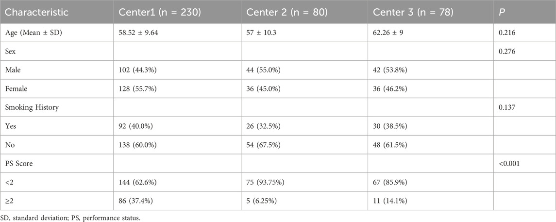 This study was approved by the ethics committee of our hospital. A total of 230 patients were enrolled from center 1 between January 2017 and December 2021 and served as the primary cohort. 80 patients were enrolled from center 2 (between Jul. 2014 and Feb. 2022), and 78 patients were enrolled from center 3 (between Jan. 2020 and Dec. 2022), and served as the external validation cohort 1 and 2, respectively. The Response Evaluation Criteria in Solid Tumors (RECIST) 1.1 (Eisenhauer et al., 2009) was used to determine treatment response to EGFR-TKI therapy. The inclusion criteria include (Sculier, 2013): underwent complete T1CE and T2W brain MRI scans before treatment, and (Boire et al., 2020) had complete gene test results. The exclusion criteria include (Sculier, 2013): with poor MRI image quality (Boire et al., 2020); age less than 18, and (Arbour and Riely, 2019) carrying a primary brain tumor or other tumor diseases. Patients from center 1 were divided into training and internal validation cohorts by random stratified sampling in a ratio of 8:2. Patients from centers 2 and 3 were used as independent sets to validate our DL methods. Figure 1 shows the screening process for patients from all three centers.