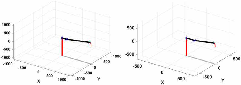 The lumbar rehabilitation structure in this study prioritizes the overall motion angle of the patient’s lumbar spine rather than the precise spatial localization of mechanical structure endpoints. It focuses on the angle formed by joint tangent lines at both ends of the patient’s lumbar spine in the coordinate plane, emphasizing consistency in positive and negative kinematic solutions during inverse motion simulation Karlik and Aydin (2000).