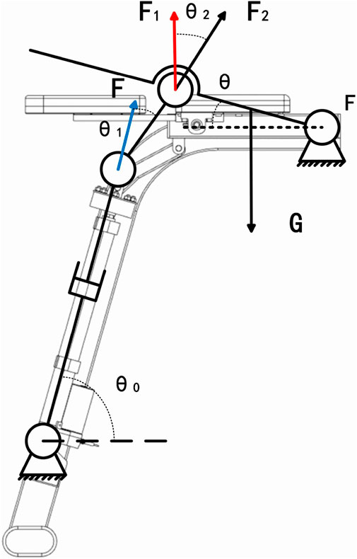 First, calculate the change in the angle of each part of the lifting mechanism due to the upper limb support plate (Formulas 5–7):