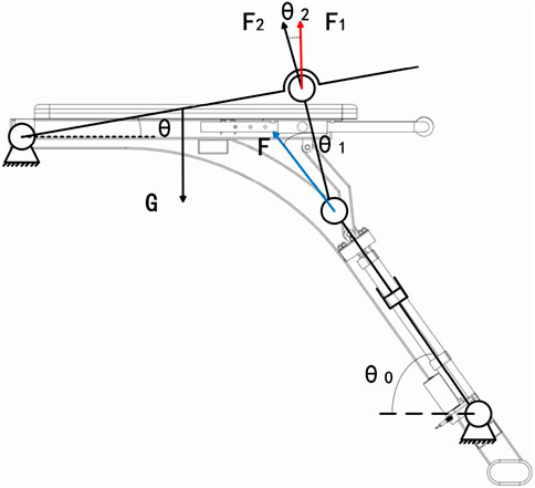 As the leg plate ascends gradually and steadily, the consideration of inertia force and moment of inertia is disregarded. This allows for the determination of the axial force point of the push rod to establish the equilibrium program (Formula 8).