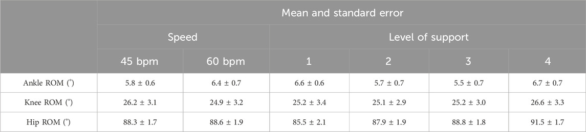The rANOVA showed a significant influence of support level on the ankle ROM (F (1.90, 28.5) = 4.35, p = 0.024,