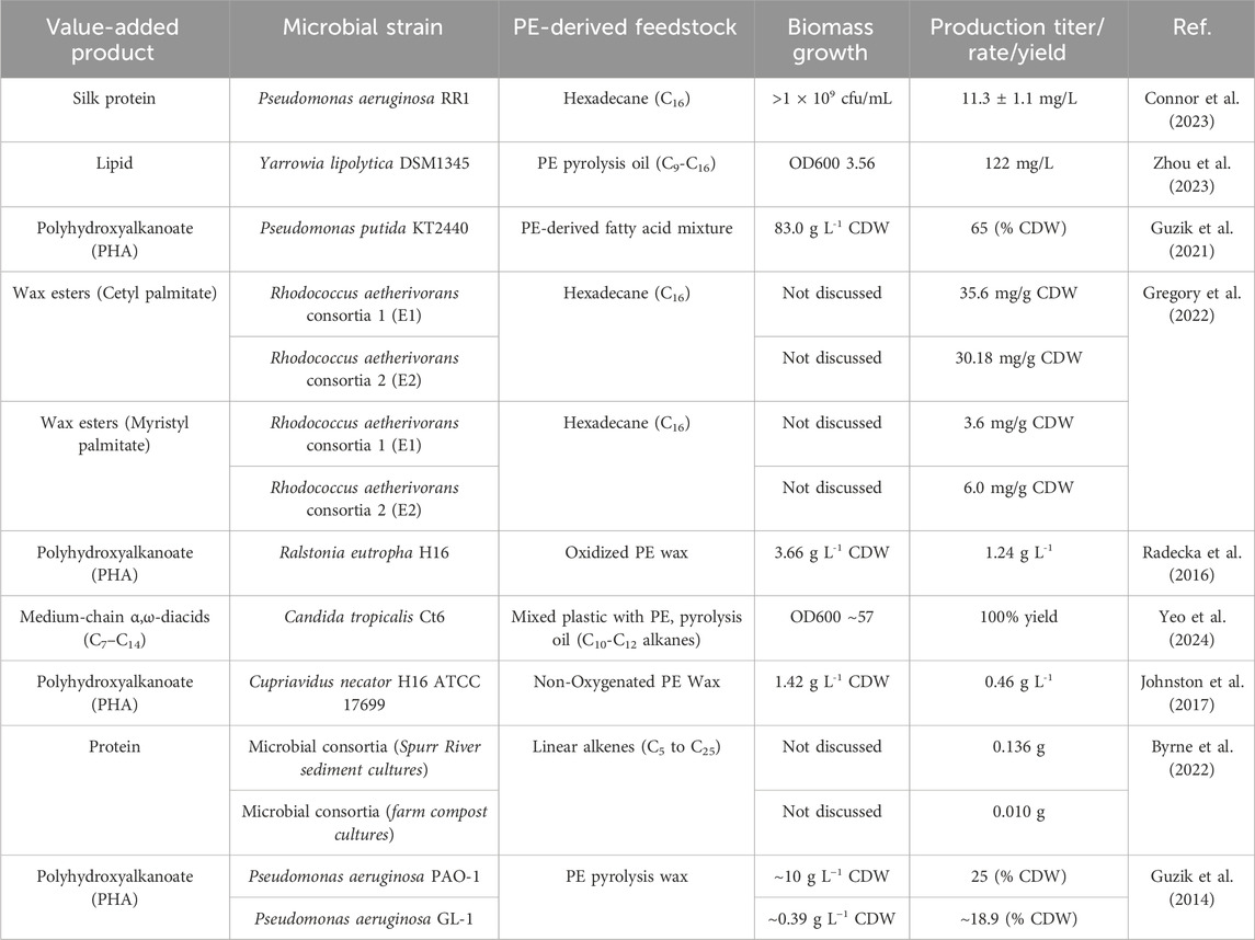 5.2 Major products from the bioconversion of PE pyrolysis-derived feedstocks