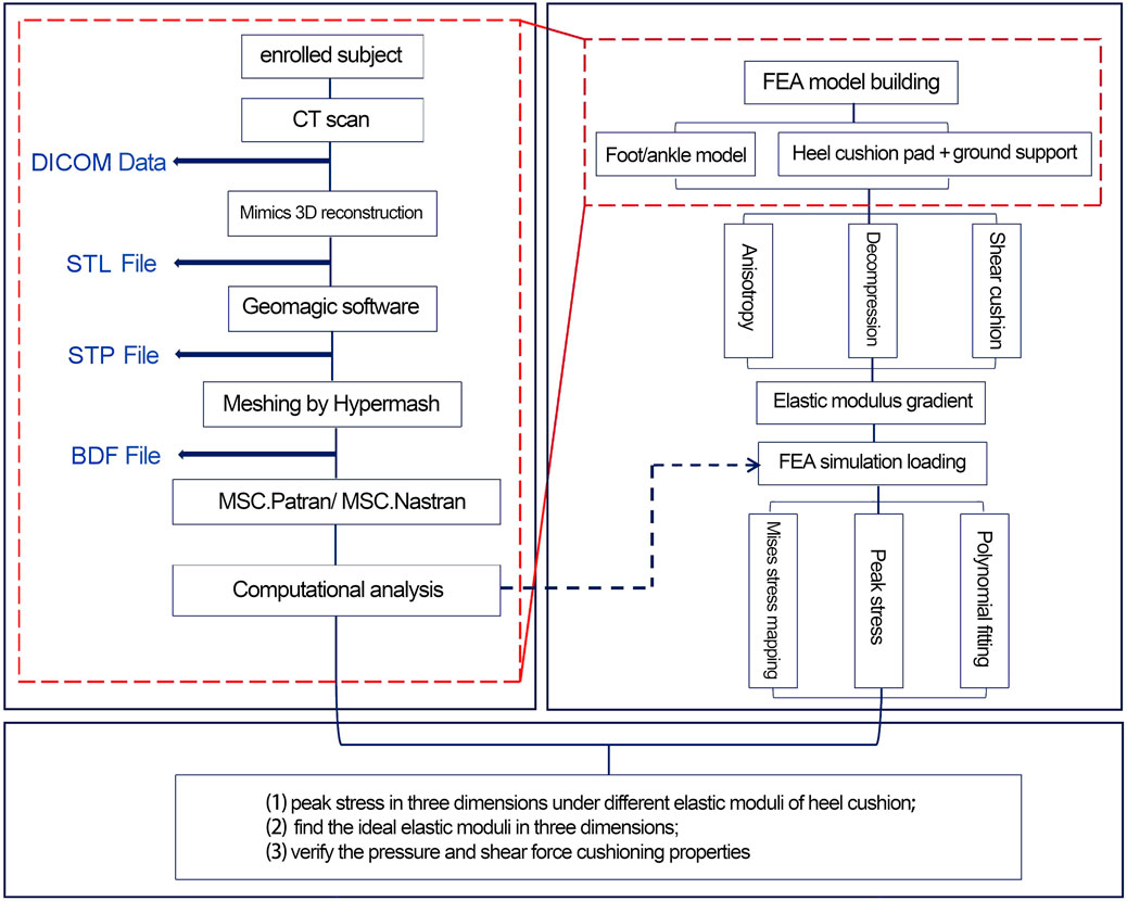 Figure 1. Flowchart for the design and verification of the anisotropic heel cushion pad for diabetic feet via finite-element analysis (FEA).