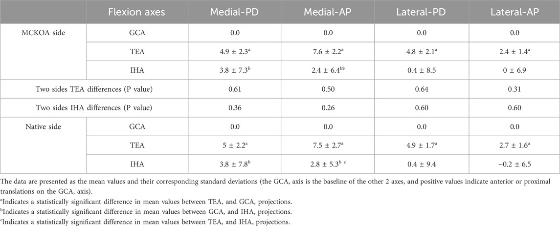 Table 4. Differences in TEA, GCA and IHA projections on each femoral condyle GCA plane between native and MCKOA knees (mean ± SD).