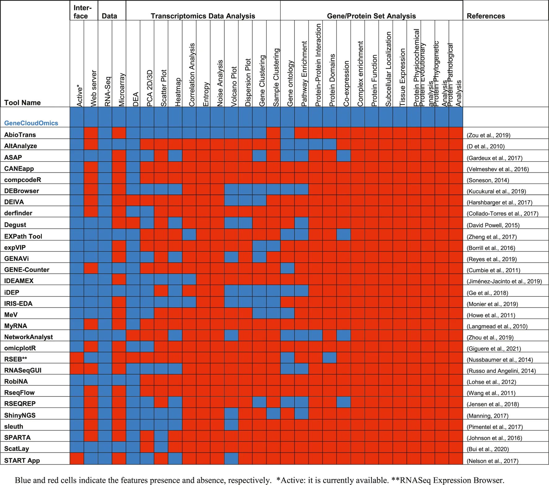 GeneCloudOmics provides users with a complete pipeline for analysing and interpreting their transcriptome data (Figure 2 and Table 2):