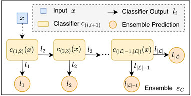Figure 1. Ordinal classifier cascade (OCC) ensemble. The OCC architecture consists of