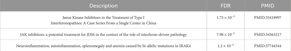 Table 2. Publication enrichment excerpt from the STRING database: Results for females 50–70 years of age contain pathways related to janus kinase and neuroinflammation.