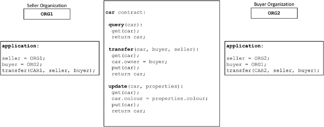 Smart contract (SC) are the core foundation behind Hyperledger Fabric’s efficiency and performance. In this permissioned blockchain architecture, SC operates as self-executing contracts, including agreed-upon business logic directly throughout the source code (Androulaki et al., 2018). Data preservation, in addition to an immutable record of state change transactions, provides remarkable transparency and automation to operations previously limited by complications, inefficiencies, and possible conflicts (Christidis and Devetsikiotis, 2016). In Hyperledger Fabric, SC is arranged into components known as Chain Code (CC) for administrative ease (Androulaki et al., 2018). These CCs, primarily created in Go but also support Node. js and Java, are run by network peers. This peer execution ensures that all authorized parties agree on transaction results before modifying the ledger state (Vukolić, 2016) as shown in Figure 3.