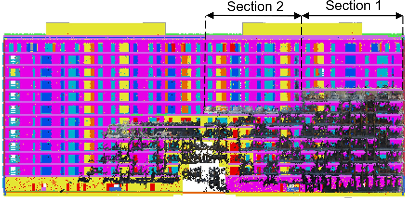 Another issue that can arise with multi-building point clouds that do not have complete coverage of the entire site is a significant disparity in the quality of different buildings. Buildings that are only partially captured and therefore fragmented can be an obstacle to accurate registration. Also, once a building is extracted from the multi-building point cloud, its base must be identified to accurately delineate the profile of the building.