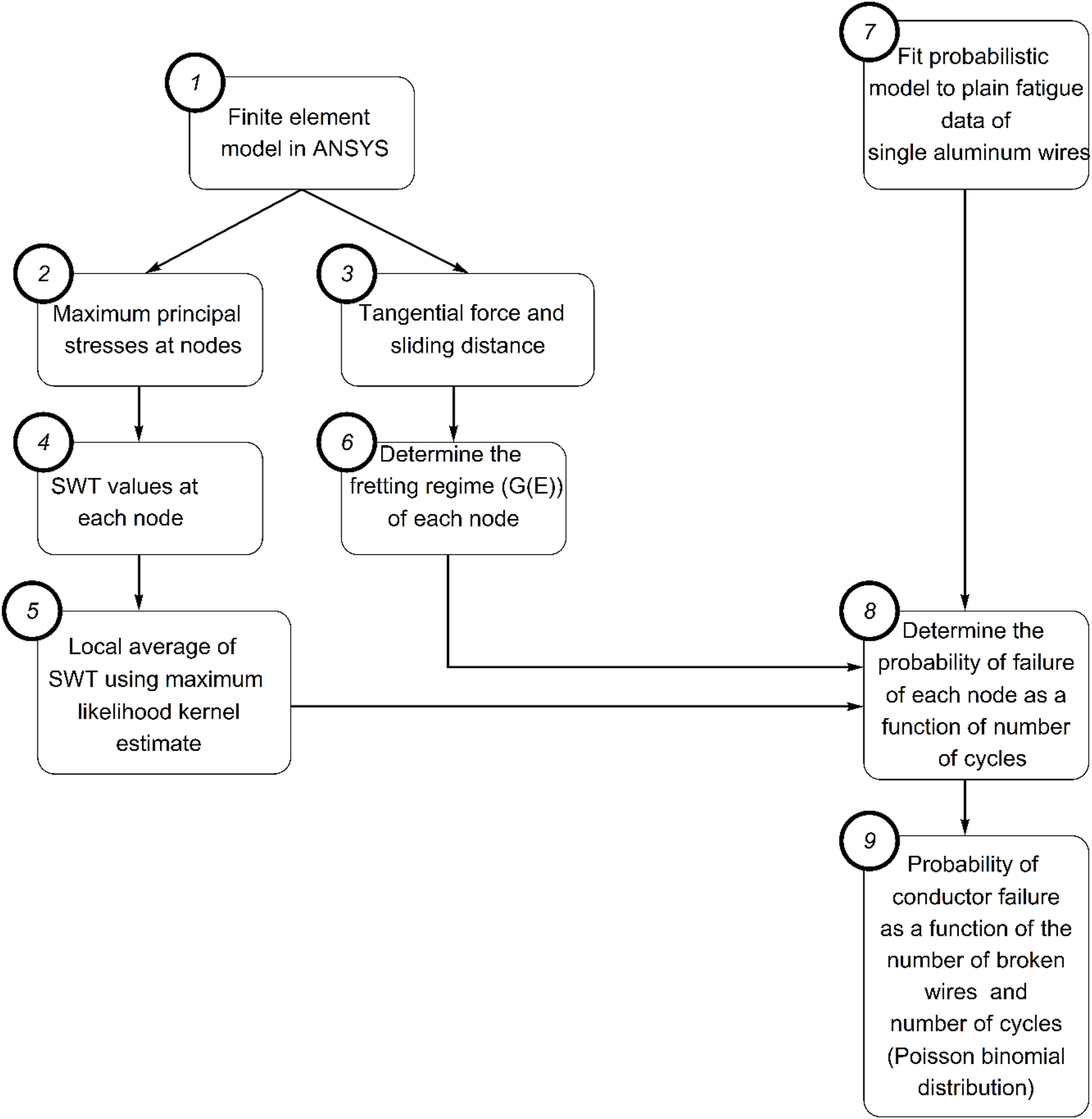 The procedure from step 8 to step 9 is repeated to evaluate the probability of failure for the desired range of number of cycles (–).