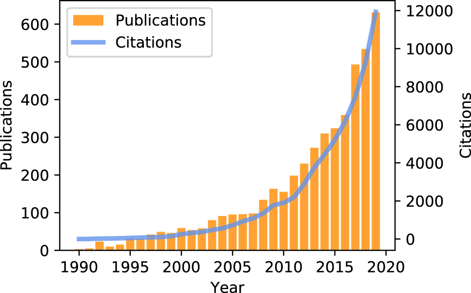 Evolution of the number of scientific publications about optimal control in buildings during the last decades. Data obtained from the Clarivate Web of Science.