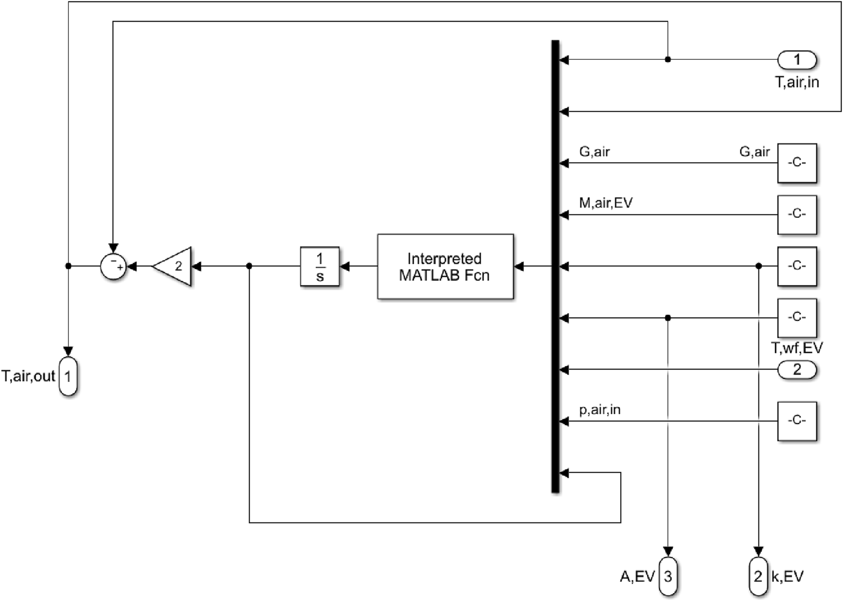 The structural diagram of the dynamic model of the investigated heat pump system, developed in the Simulink environment, is shown in Figure 4.