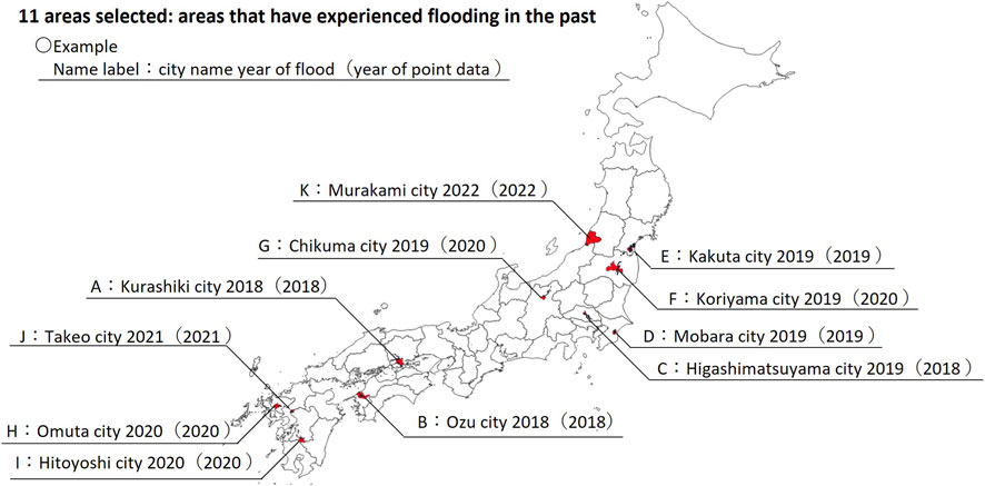 Zenrin Co., Ltd. (2018). Building point data:kurashiki city (2018), Ozu city (2018), Higashimatsuyama city (2018), Mobara city (2019), Kakuta city (2019), Koriyama city (2020), Tikuma city (2020), Omuta city (2020), Hitoyoshi city (2020), Musashio city (2021), Murakami city. Available online at: https://www.zenrin.co.jp/product/category/gis/contents/building-point/index.html.
