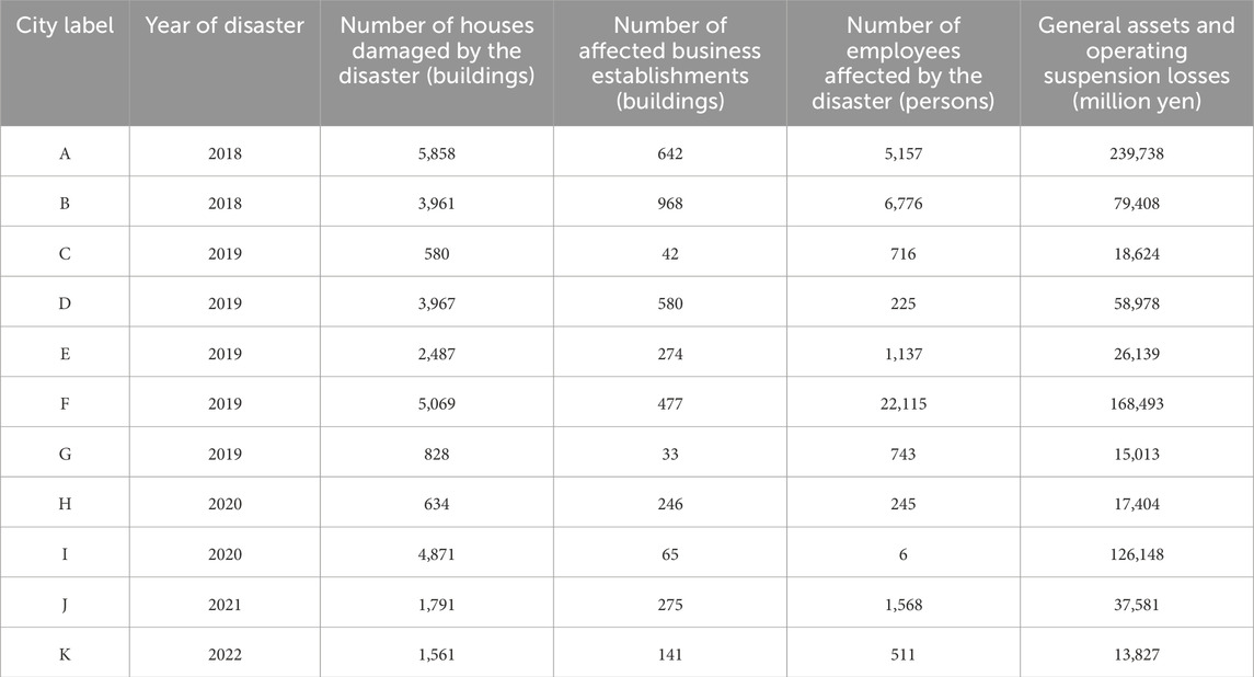 Liu, H., Tatano, H., Kajitani, Y., and Yang, Y. (2022). Analysis of the influencing factors on industrial resilience to flood disasters using a semi-markov recovery model: a case study of the heavy rain event of July 2018 in Japan. Int. J. Disaster Risk Reduct. 82, 103384. doi:10.1016/j.ijdrr.2022.103384