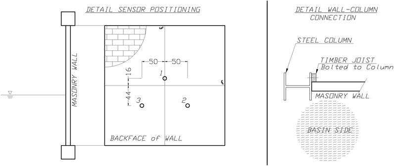 A single-wythe masonry wall was constructed to replicate typical fired-clay brick walls commonly found in Dutch buildings (Jafari et al., 2017). The wall measured 2.7 × 2.7 m, with a thickness of 100 mm, and was built using standard ‘waalformaat’ fired-clay bricks measuring 210 × 50 × 100 mm.