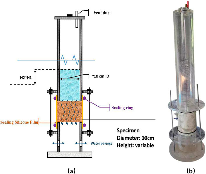 Figure 3. The schematic and actual object of the permeability test apparatus. (a) Schematic Diagram of the Apparatus (b) Physical Photograph of the Apparatus.