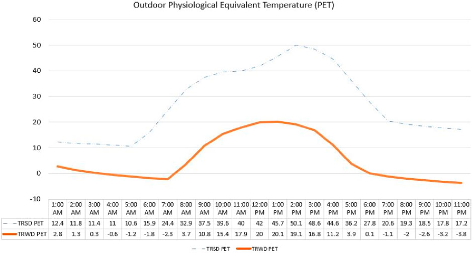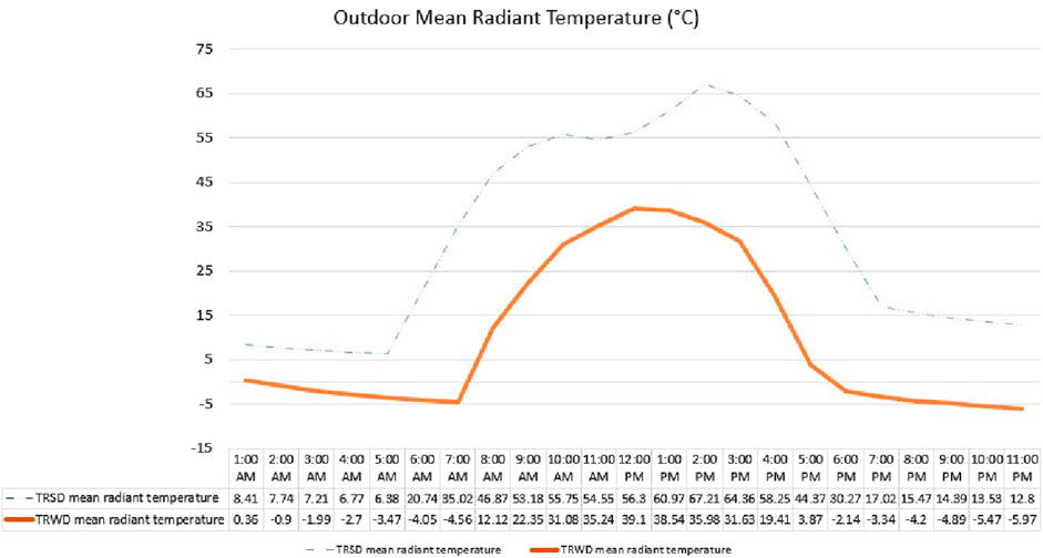 Figure 11. Comparison of outdoor mean radiant temperature for summer and winter typical design days.