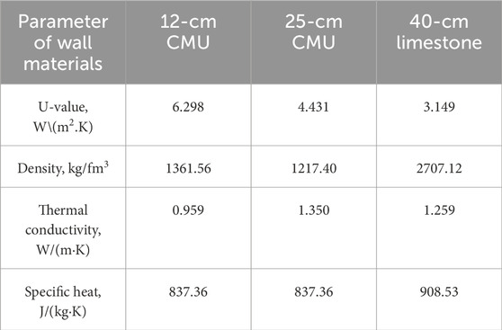 Table 2. The practical scenarios in terms of physical properties of wall materials (Fahmy et al., 2019).