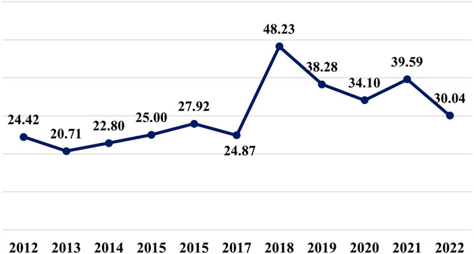 Road traffic crashes remain one of the most pressing safety challenges in Thailand, particularly those involving trucks, which tend to be more severe and result in substantial loss of life and property. According to the World Health Organization (World Health Organization, 2023), Thailand reports a road traffic fatality rate of 25.4 deaths per 100,000 population, among the highest in Southeast Asia. Truck-related crashes play a significant role in this statistic due to the inherent characteristics of large commercial vehicles such as their size, weight, and high-speed operation over long distances. Data from the Department of Land Transport indicate that, as of 2024, the number of registered trucks in Thailand exceeded 1.24 million units, marking a 6.70% increase from the previous year (Department of Land, 2024). As shown in Figure 1, the number of truck crashes per 10,000 registered vehicles fluctuated notably between 2012 and 2022, peaking at 48.23 incidents per 10,000 trucks in 2018, before declining to 30.04 in 2022 (Thailand Road Safety Collaboration, 2023). This variability underscores the unpredictability of road freight safety trends and highlights the urgent need to investigate the underlying factors contributing to crash injury severity. Of particular interest are driver behavior characteristics, in conjunction with provincial-level contextual factors, which may exert hidden but critical influences on crash outcomes.