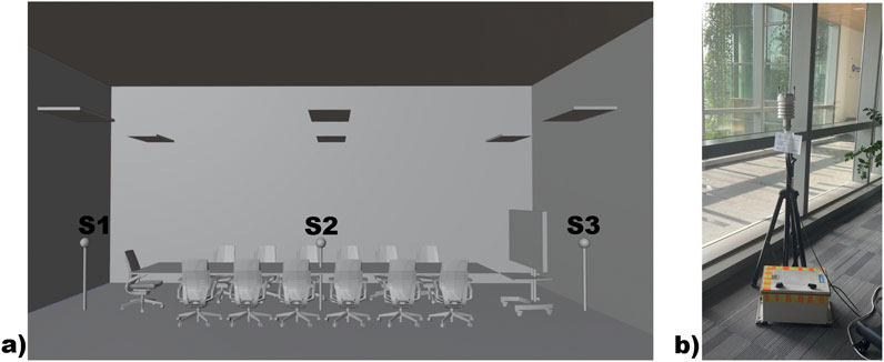 Figure 5. (a) Location of all sensors inside the room; (b) deployment of sensor S3 beside the outer glass wall.