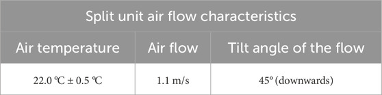These values encompass the operational capabilities of a typical commercial air conditioning unit installed in the building, while also including the nominal setpoint provided by the building management system (22 °C and 1.1 m/s as shown in Table 4).