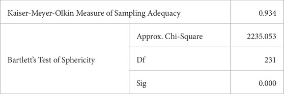 In order to further explore the attribute of the resources and capabilities requirements for exporting services and products and to determine how they are related; an exploratory factor analysis was carried out. The essence of this analysis is to identify and describe those variables of resources and capabilities that share the same attributes and to explore them. The outcome of the analysis considered parameters such as Kaiser-Meyer-Olkin (KMO), which measures the level of adequacy of the sample of responses obtained and Bartlett’s Test of Sphericity, which measures degree of freedom and level of significance. The value of KMO ranges from 0 to one and the closer to one the better while a minimum of 0.5 is advised for factor analysis to proceed (Field 2013). Also, the Bartlett’s test of sphericity is expected to be significant at P < 0.05. The results of KMO presented on Table 2 revealed the KMO value is 0.934 and this shows that the responses given by the respondents on resources and capabilities requirements for exporting services and products by construction organizations in Nigeria to the West African markets are adequate and suitable for factor analysis. The Bartlett’s test of sphericity is also significant at 0.000.