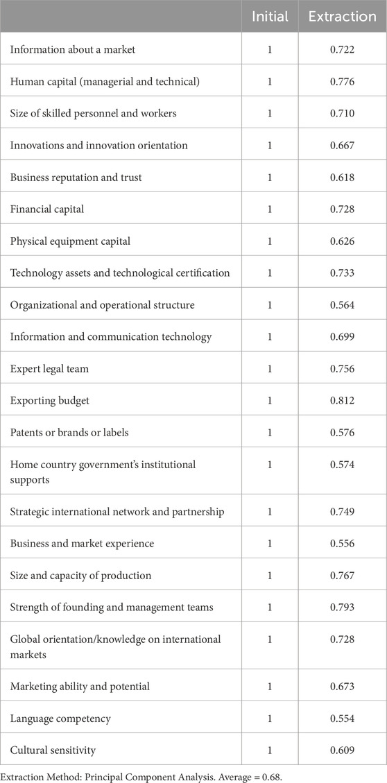 Table 3. Communalities of resources and capabilities of the construction organizations in Nigeria to export services into the West African markets.