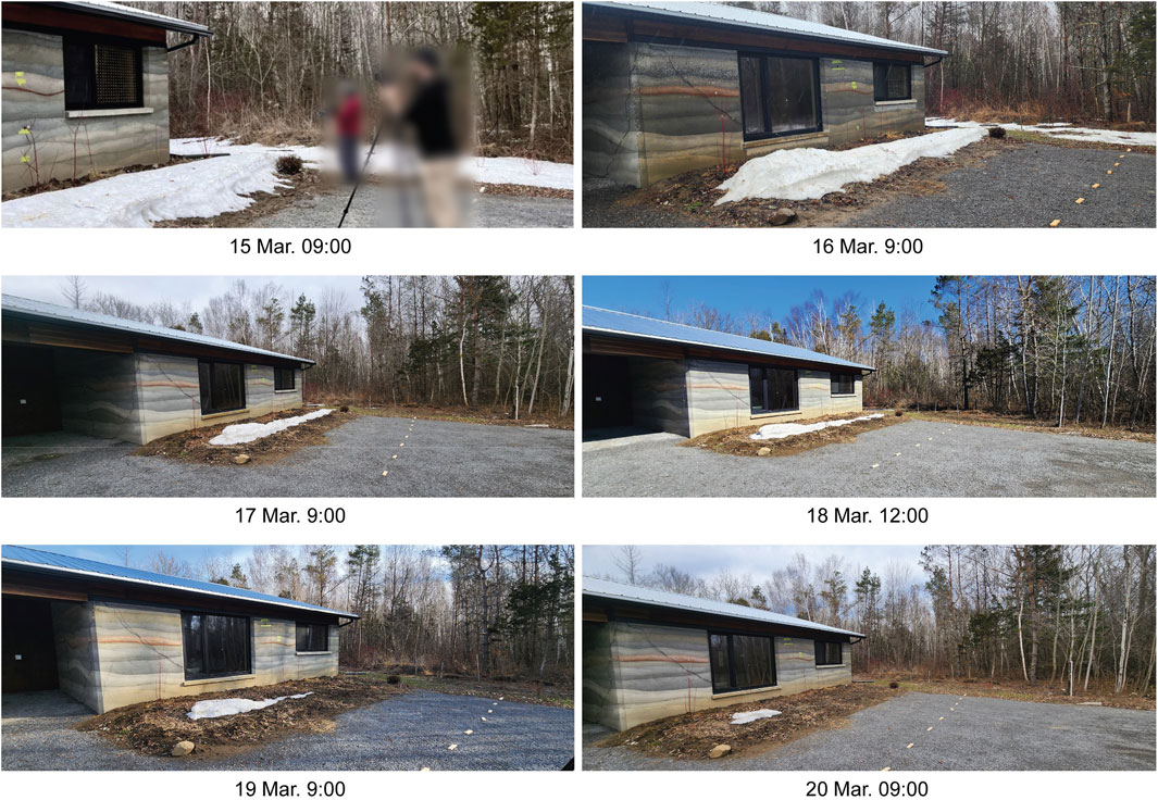 Figure 8. Observed snow coverage in front of the house from March 15 to 20, illustrating progressive snowmelt during the monitoring period.