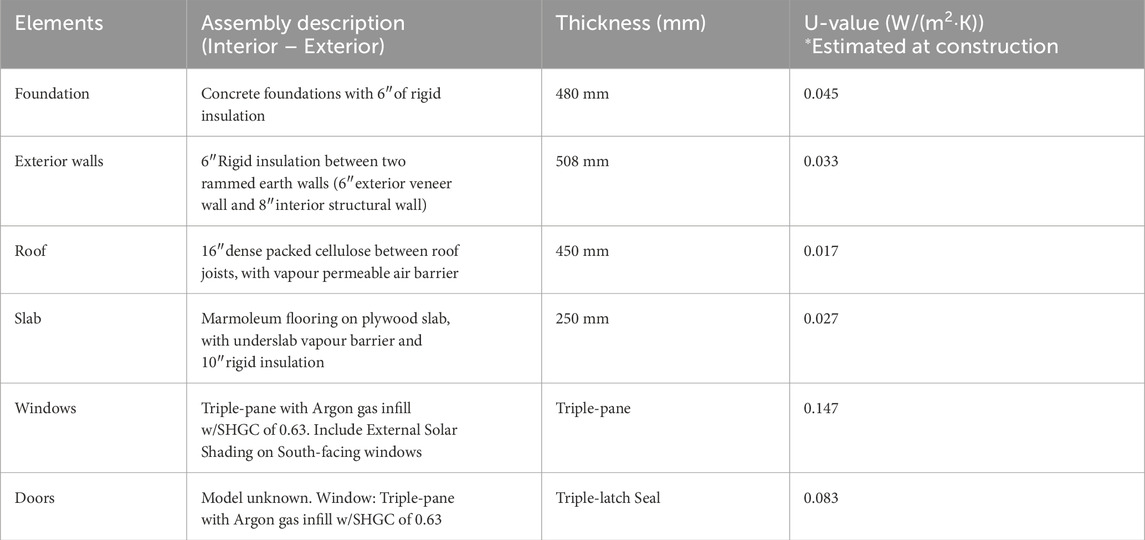 Rammed earth construction is increasingly considered a viable solution in cold climate for energy-efficient and low-impact buildings, offering significant thermal inertia, hygrothermal regulation, and low embodied energy (Easton, 2007; Hall and Allinson, 2012; Krahn, 2019). Numerous studies have highlighted the ability of rammed earth’s thermal mass to enhance energy efficiency by storing heat and releasing it gradually (Beckett and Ciancio, 2012; Dong et al., 2014; Fernandes et al., 2019; Samadianfard and Toufigh, 2020; Soudani et al., 2017; Uprety et al., 2024). However, most performance evaluations have been carried out in warm or temperate climates, where its passive thermal behavior has been shown to reduce reliance on active systems (Dong et al., 2014; Beckett et al., 2017; Gupta et al., 2020). Recent reports in Canada highlight the energy-related benefits of rammed earth (Ciancio and Beckett, 2015; Krayenhoff, 2012; Wong and Cook, 2014), but they often lack a clear methodological framework or detailed explanation of data sources, which limits the reliability of their findings. Nonetheless, the observations presented in these reports, based on 30-day monitoring periods, demonstrate the material’s ability to slow heat loss and moderate indoor temperatures in unoccupied dwellings, underscoring its capacity to dampen thermal fluctuations and capitalize on thermal mass effects (Krayenhoff, 2012; Wong and Cook, 2014).