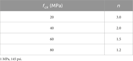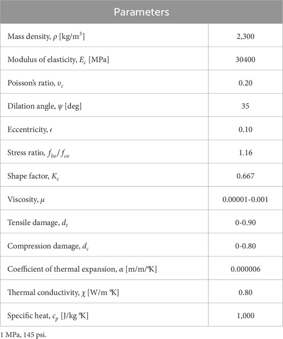 The nonlinear behavior of concrete is simulated using the concrete damage plasticity (CDP) model available in ABAQUS Standard software (ABAQUS, 2020). The CDP is a smeared-cracked model that combines isotropic damage and plasticity concepts for modeling the main two failure mechanisms of concrete: tensile cracking and compressive crushing (ABAQUS, 2020). The input parameters used for the CDP model are summarized in Table 1. The uniaxial tensile behavior of concrete is described through the uniaxial stress-strain and stress-crack opening relationships shown in Figure 4 based on the CEB-FIP Model Code (CEB, 2010).