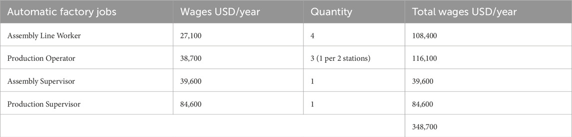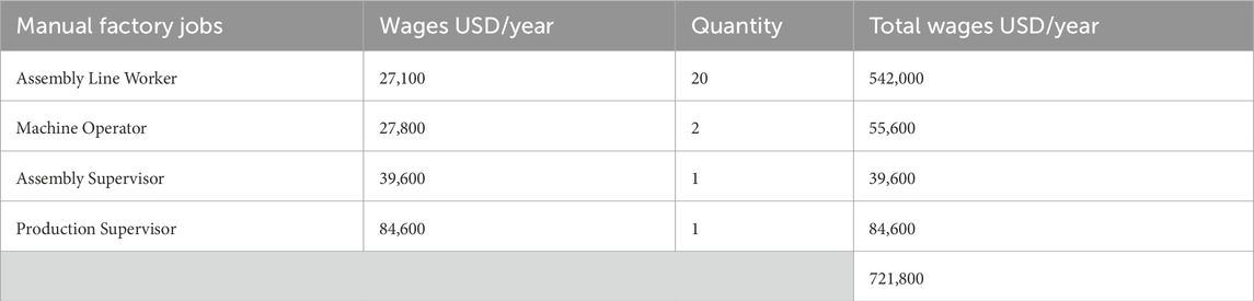Table 3. Assumed annual labor costs for manual factory setup [based on US market data (Average Salary in United States, 2025)].