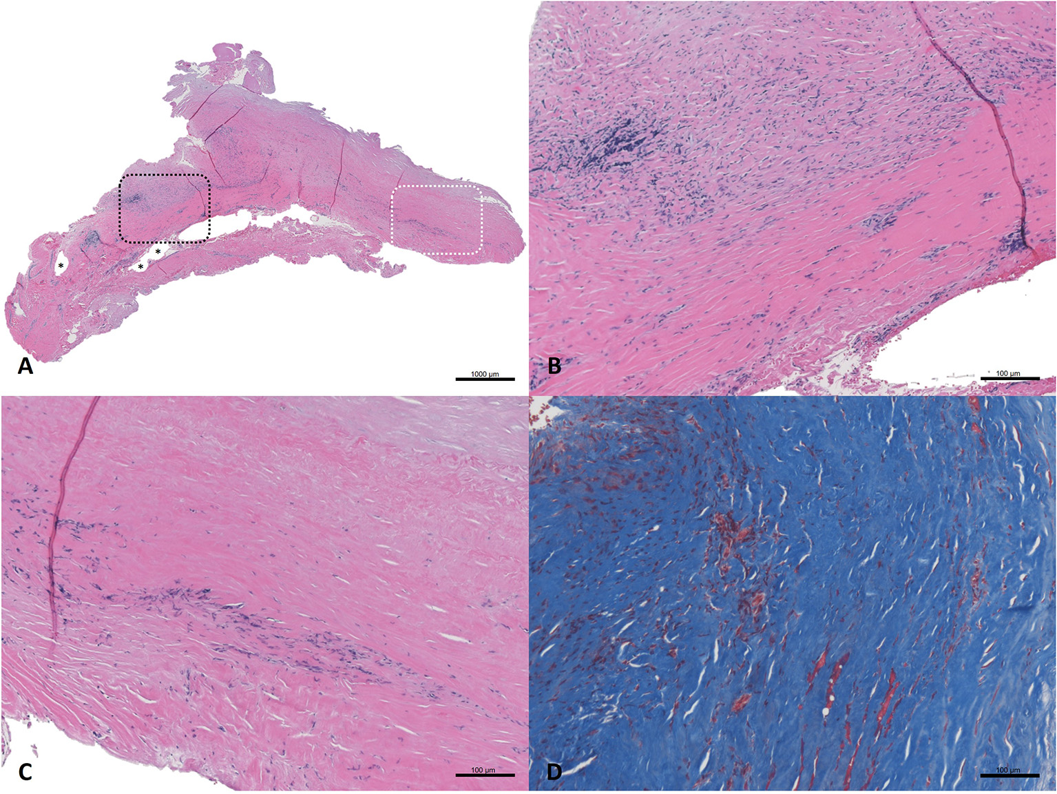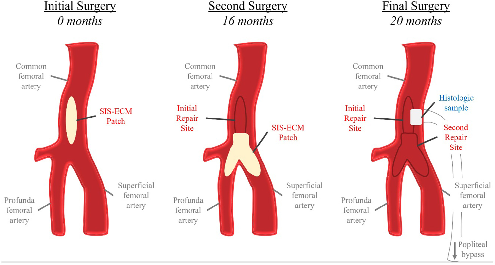 Also presented is a histologic analysis of explanted SIS-ECM from one patient after a healed femoral endarterectomy repair and obtaining informed patient consent. We believe this is the first histologic report of site-appropriate vascular tissue remodeling of SIS-ECM following endarterectomy.
