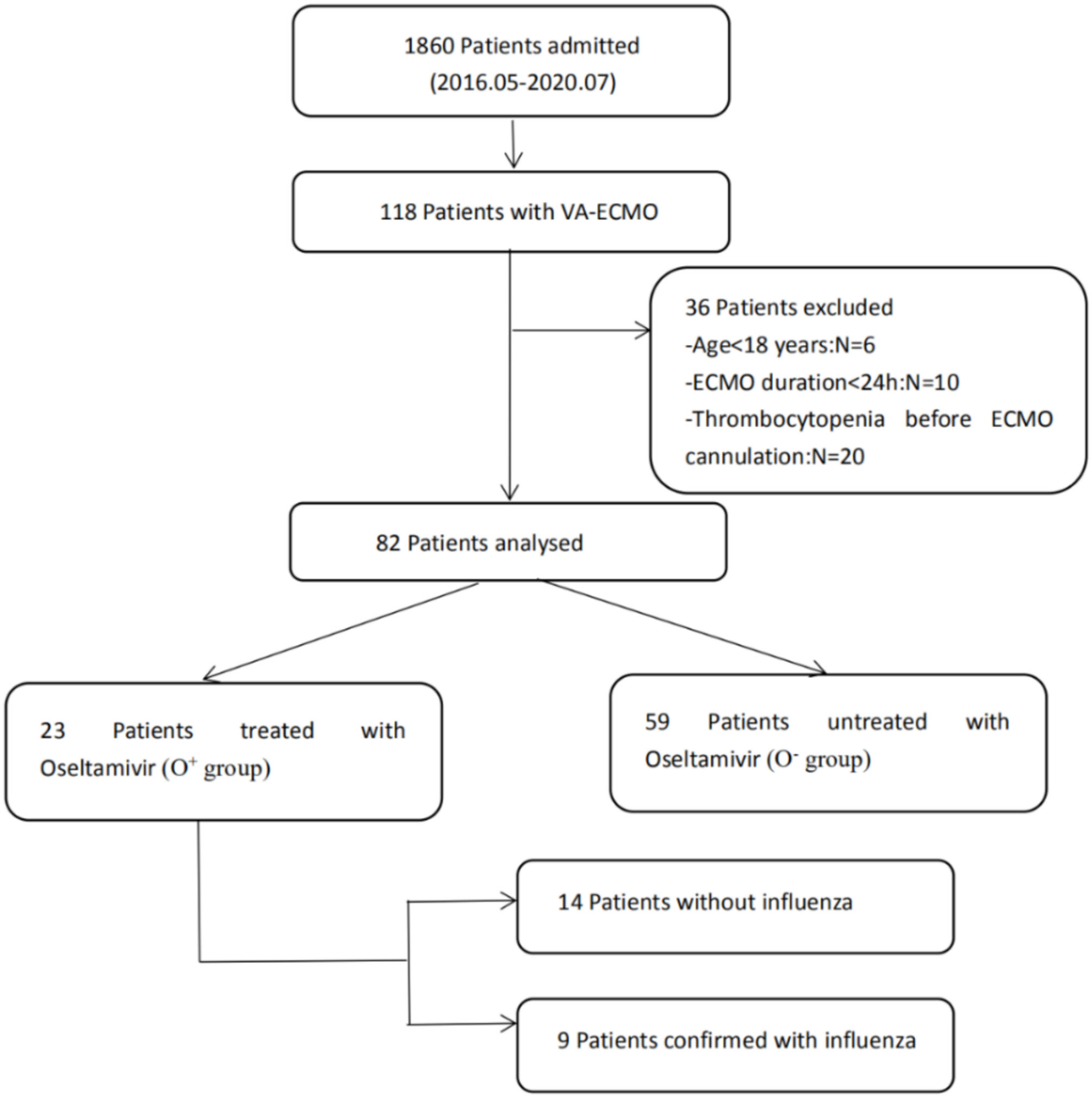 Conclusions: Oseltamivir could ameliorate VA-ECMO-related thrombocytopenia. These findings suggested the prophylactic potential of oseltamivir on severe thrombocytopenia associated with the initiation of VA-ECMO.