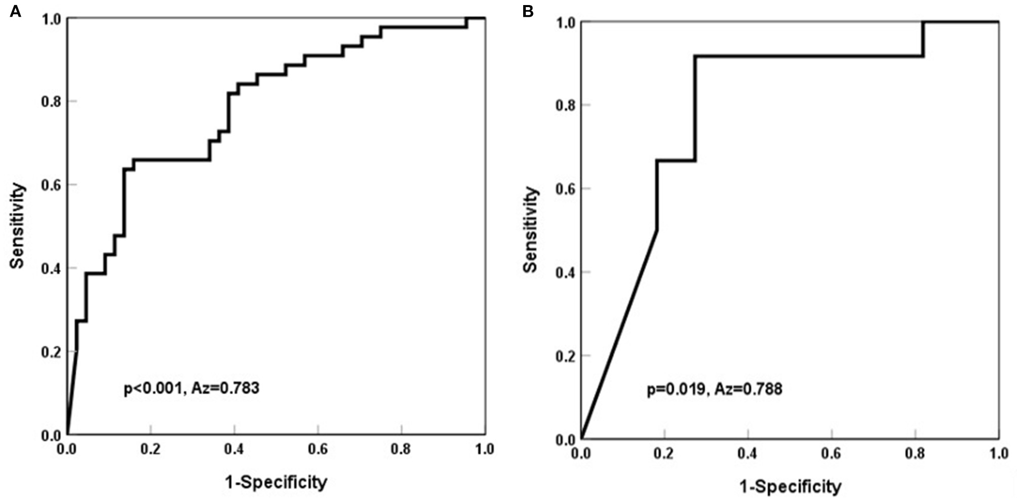 Results: A total of 129 hemodialysis patients (74 men and 55 women; mean age: 59.4 ± 13.0 years) were recruited. The average hemodialysis duration was 55.5 (23.9–93.4) months, the NT-pro BNP level was 4992 (2,033–15,807) pg/mL, and the value of overhydration was 2.68 ± 0.19 (−1.9 to 12.2) L. The NT-pro BNP level was independently correlated with overhydration in both the LVEF ≥ 60% (β = 0.236, P = 0.044) and LVEF <60% (β = 0.516, P = 0.032) groups, even after adjustments for potentially confounding variables. In receiver operating characteristic curves of NT-pro BNP for predicting volume overload, the area under the curve was 0.783 [95% CI (0.688–0.879), P < 0.001) and 0.788 [95% CI (0.586–0.989), P < 0.001] in the LVEF ≥ 60% and LVEF < 60% groups, respectively.